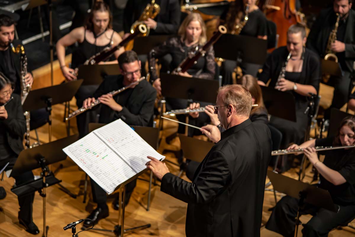 WINDWERK, das bislang mit sinfonischer Blasmusik vom Feinsten aufwarten konnte, erwies sich als kongenialer Partner, dessen Fähigkeiten hinsichtlich Klang, Rhythmik, differenzierter Dynamik, in den zahlreichen Soli und im Zusammenspiel schlichtweg begeisterten. Dieser Eindruck bestätigte sich auch in den orchestralen Three Dance Episodes von Leonard Bernstein und The Year of the Dragon von Philip Sparke, die höchste musikalische Anforderungen stellen. Einleitend überzeugte Night on Fire von John Mackey mit seiner rhythmischen Verve. Thomas Ludescher dirigierte mit großer Präzision, Leidenschaft und energetischen Pulsen, die sich unmittelbar auf die Klanglichkeit im Orchester auswirkten. WINDWERK zeigte die enorme stilistische Bandbreite und Flexibilität, die großartige sinfonische Blasmusik auszeichnet.