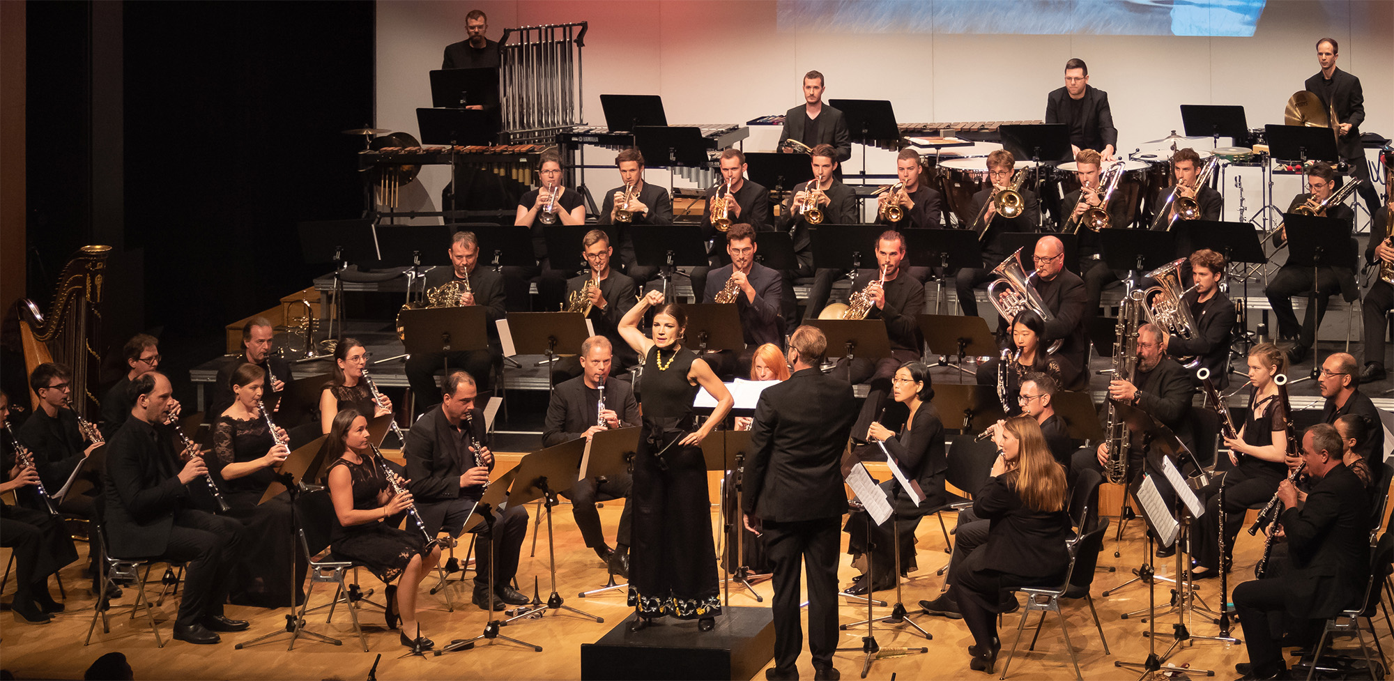 Den beinahe 50 Musikerinnen und Musikern aus der internationalen Region war die tiefe Freude über das gemeinsame künstlerische Tun anzumerken. Schwungvoll eröffnete Thomas Ludescher mit der Ouvertüre zu Ruslan und Ljudmila von Michail Glinka den Abend. Lincolnshire Posy von Percy Grainger basiert auf nur mündlich weitergegebenen Volksliedern der English Midlands, die er 1905 aufzeichnete und später zu einer höchst anspruchsvollen Komposition verarbeitete. Rhythmische Komplexität, Virtuosität, sinfonischer Glanz und kammermusikalische Intimität verdichten sich auf engstem Raum und boten WINDWERK alle Möglichkeiten, seine überragenden Qualitäten ausspielen zu können. El Camino Real von Alfred Reed, eine Fantasie über den Flamenco, rundete mit einem orchestralen Feuerwerk den ersten Konzertteil ab.