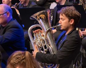 Den beinahe 50 Musikerinnen und Musikern aus der internationalen Region war die tiefe Freude über das gemeinsame künstlerische Tun anzumerken. Schwungvoll eröffnete Thomas Ludescher mit der Ouvertüre zu Ruslan und Ljudmila von Michail Glinka den Abend. Lincolnshire Posy von Percy Grainger basiert auf nur mündlich weitergegebenen Volksliedern der English Midlands, die er 1905 aufzeichnete und später zu einer höchst anspruchsvollen Komposition verarbeitete. Rhythmische Komplexität, Virtuosität, sinfonischer Glanz und kammermusikalische Intimität verdichten sich auf engstem Raum und boten WINDWERK alle Möglichkeiten, seine überragenden Qualitäten ausspielen zu können. El Camino Real von Alfred Reed, eine Fantasie über den Flamenco, rundete mit einem orchestralen Feuerwerk den ersten Konzertteil ab.